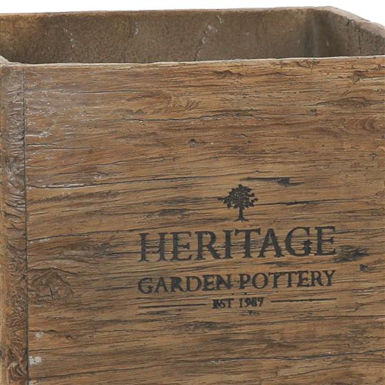 Brown Heritage square pots are known for quality and these ceramic, hand finished pots are no exception. Featuring the heritage logo with a gloss glaze, they will look fantastic in your garden or on your patio. Frost proof as well, they'll look great all year round.