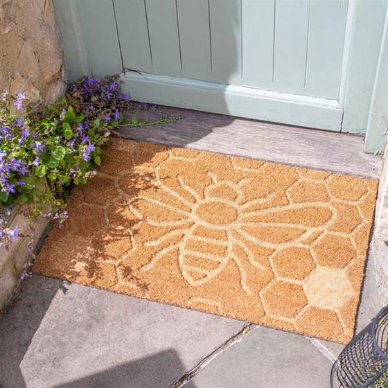 Bee our guest when you welcome visitors with this stylish coir doormat!