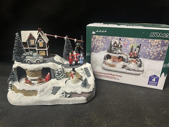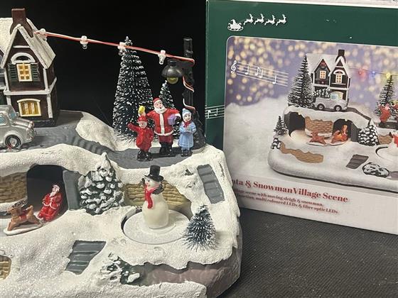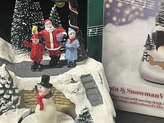 Musical Christmas village scene - Santa and Snowman.